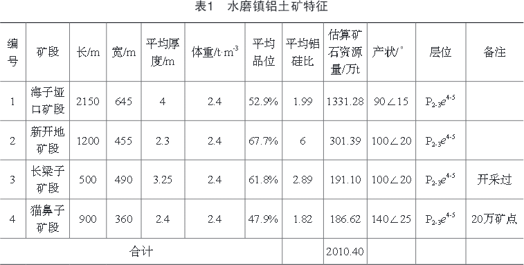 表1水磨鎮(zhèn)鋁土礦特征