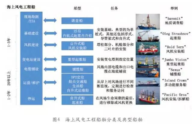 另外,海上風(fēng)電工程裝備還包括針對海上風(fēng)電場開發(fā)的特殊船舶,主要可以分為兩大類:海上風(fēng)電安裝船和風(fēng)電運(yùn)維船。
