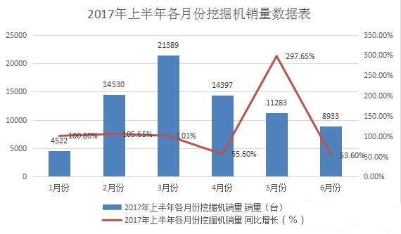 2017年上半年各月份挖掘機(jī)銷量數(shù)據(jù)表