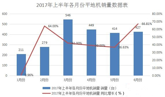 2017年上半年各月份平地機(jī)銷售數(shù)據(jù)表