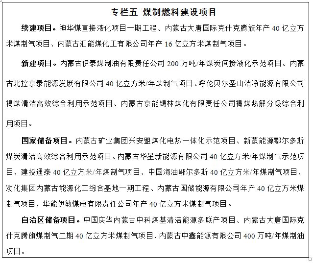 推進煤制燃料升級示范。在現(xiàn)有煤制燃料示范項目的基礎(chǔ)上,按照節(jié)水、環(huán)保、高效的原則,重點在水煤組合條件較好的地區(qū),根據(jù)煤炭資源賦存、水資源和生態(tài)環(huán)境承載能力,按照項目前期工作和建設(shè)條件成熟程度,逐步推進煤制油、煤制氣等煤制燃料產(chǎn)業(yè)高標準、高水平升級示范?!笆濉逼陂g,力爭新開工煤制油規(guī)模300萬噸左右、煤制氣規(guī)模120億立方米左右。