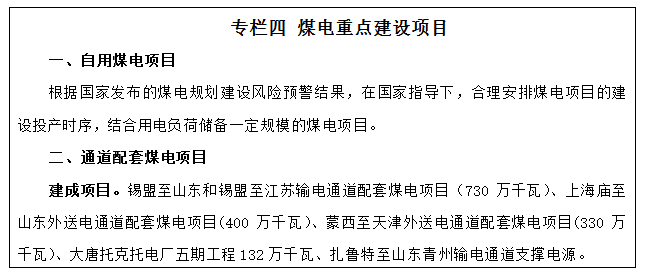 穩(wěn)步推進煤電基地建設(shè)。綜合考慮國家能源發(fā)展戰(zhàn)略、受端電力市場需求等因素,合理安排煤電基地建設(shè)時序。重點圍繞鄂爾多斯、錫林郭勒、呼倫貝爾三個以電力外送為主的大型煤電基地,積極推進高參數(shù)、大容量先進燃煤發(fā)電機組建設(shè),新建燃煤發(fā)電項目原則上采用60萬千瓦及以上超超臨界機組。鄂爾多斯煤電基地重點推進上海廟-山東、蒙西-天津南等輸電通道配套煤電建設(shè);錫林郭勒煤電基地重點推進錫盟-山東、錫盟-江蘇等輸電通道配套煤電建設(shè);呼倫貝爾煤電基地積極啟動呼倫貝爾外送輸電通道配套煤電建設(shè)。