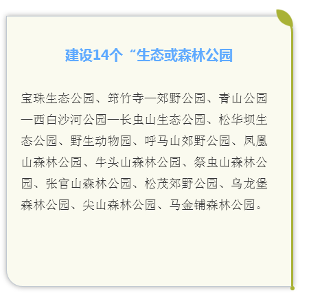 為保證良好的城市生態(tài)環(huán)境和歷史文化遺存,規(guī)劃還劃出了重點生態(tài)建設區(qū),重點推進建設14個“生態(tài)或森林公園” 。