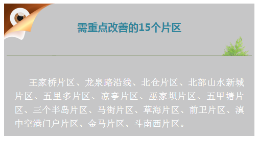 而針對體現(xiàn)城市形象與面貌的重點空間和區(qū)位條件較佳、有較好發(fā)展基礎,但環(huán)境負荷過重、配套設施不完善、綜合環(huán)境較差、城市交通梗塞等對城市整體功能提升和產業(yè)發(fā)展造成不利影響的地區(qū),則需要“重點改善”,以全面提升城市形象。
