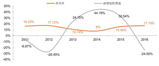 歷年棄風(fēng)率與行業(yè)新增裝機(jī)增速對(duì)比
