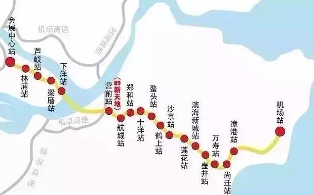 地鐵6號(hào)線仍設(shè)站19座:即會(huì)展中心站、林浦站、蘆岐站、梁厝站、下洋站、營(yíng)前站、航城站、鄭和站、十洋站、鰲頭站、鶴上站、沙京站、蓮花站、濱海新城站、壺井站、萬(wàn)壽站、尚遷站、漳港站、機(jī)場(chǎng)站。
