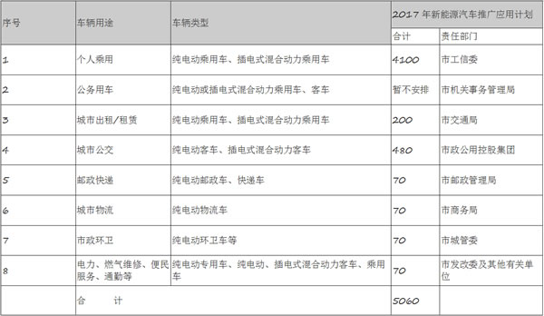 南昌市2017年度新能源汽車車輛推廣應(yīng)用年度計(jì)劃任務(wù)表