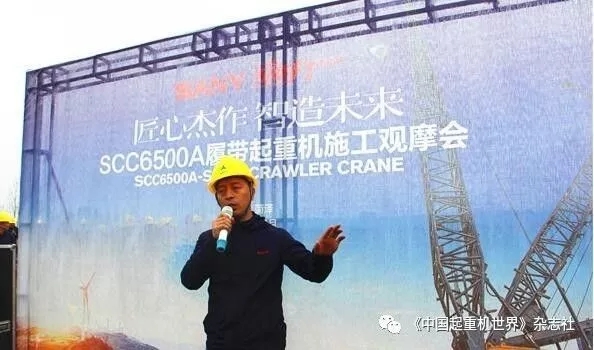 三一SCC6500A履帶式起重機項目經(jīng)理焦占芳現(xiàn)場講解產(chǎn)品性能及應用工況