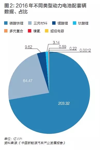 國(guó)內(nèi)的動(dòng)力電池以磷酸鐵鋰電池和三元電池為主,其中磷酸鐵鋰主要供應(yīng)客車,三元電池主要供應(yīng)中高端乘用車。新能源客車此前引領(lǐng)了國(guó)內(nèi)新能源汽車的發(fā)展,因此,鐵鋰電池是當(dāng)前國(guó)內(nèi)電池產(chǎn)能的主力。中國(guó)汽車技術(shù)研究中心的數(shù)據(jù)顯示,2016年中國(guó)生產(chǎn)的新能源汽車中,磷酸鐵鋰電池總配套量為203.32億Wh,占比72.26%,其中的72%供應(yīng)給純電動(dòng)客車;三元電池總配套量為64.47億Wh,占比22.91%,其中的73%供應(yīng)給純電動(dòng)乘用車。