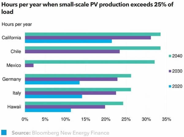 到2020年,德國小規(guī)模光伏系統(tǒng)在逐時(shí)負(fù)荷中的最高比例