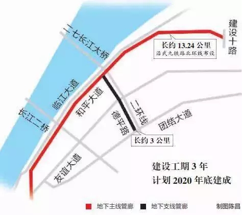 項(xiàng)目概況:工程主要沿武九鐵路北環(huán)線布設(shè),包括新建16.24公里地下綜合管廊、沿線路口鐵路橋梁拆除、路口改造及續(xù)建建設(shè)十路540米道路,建設(shè)工期3年,計(jì)劃2020年底建成。
