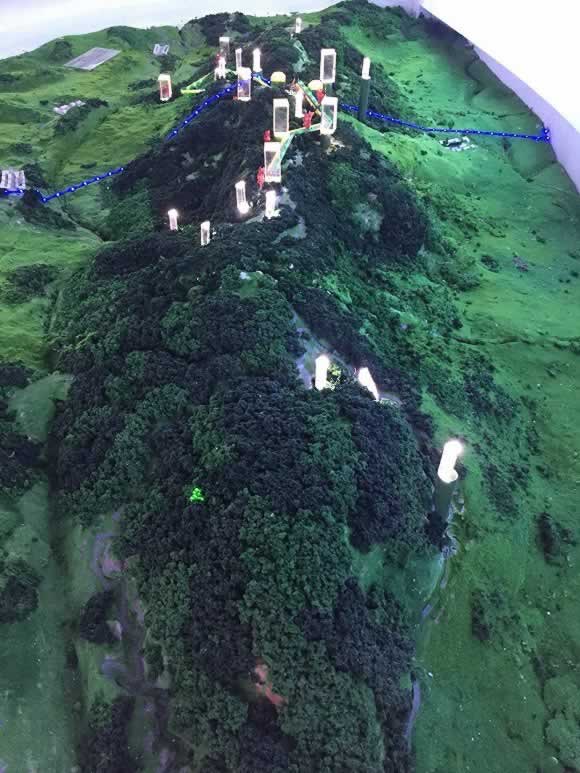 相國(guó)寺儲(chǔ)氣庫模型。燈座為注氣站,藍(lán)色線為內(nèi)部天然氣管道。