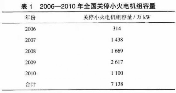 ●“十一五”(2006--2010年)期間,國家提倡清潔高效地有序發(fā)展火電,2006--2010年,全國累計關(guān)停小火電7138萬kW,其具體情況如下表1所示:
