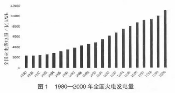 ●1980--2000年全國火電發(fā)電量如圖1所示: