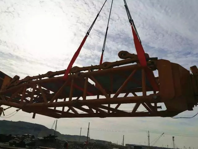 據(jù)了解,為了完成這次吊裝任務,徐工集團高度重視,專門成立了以主機廠裝配分廠廠長帶隊的14人安裝調(diào)試服務隊。設備上島前,調(diào)試隊員就提前登島,并與現(xiàn)場的中石化起運公司技術人員進行充分溝通,對組裝調(diào)試現(xiàn)場進行調(diào)研,從而對設備結(jié)構(gòu)件的擺放做出科學高效的規(guī)劃。