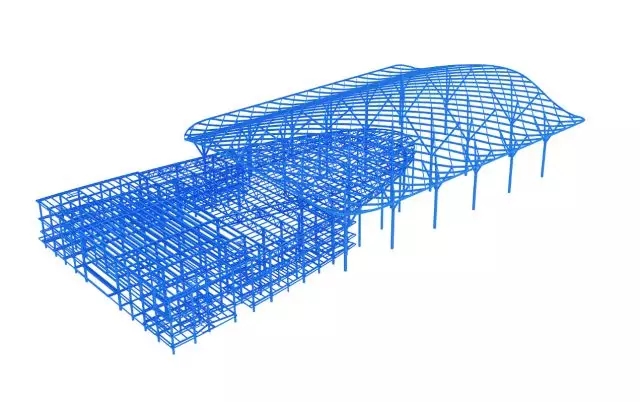 據(jù)了解,北區(qū)C10登錄大廳單體長約250米,最大跨度約126米,高度39米,結(jié)構(gòu)形式為下部鋼框架+斜交單層網(wǎng)殼鋼罩棚結(jié)構(gòu)。其中鋼罩棚最大跨度126m,最大標(biāo)高38.9米。網(wǎng)殼尺寸為6.3米的單元網(wǎng)格,分片最大跨度27米。屋面層桁架截面高度4.35米,最大跨度45米。登錄大廳是本工程集結(jié)構(gòu)形式復(fù)雜、體量大、工期緊、凈空高、交叉工序多等特點于一體的單體,對施工方法選擇、措施布置、平面部署、測量精度控制、質(zhì)量安全保障等均有極高要求。