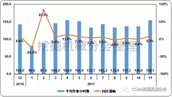 根據(jù)挖掘機(jī)械分會調(diào)研統(tǒng)計(jì),近一年挖掘機(jī)械出勤小時(shí)數(shù)同比略有增加,設(shè)備出勤率也穩(wěn)定在較高水平。