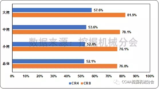 圖8 2017年國內(nèi)挖掘機(jī)械市場不同機(jī)型市場集中度