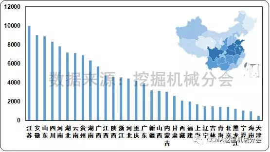 圖9 2017年國內(nèi)挖掘機(jī)械市場各省份銷量