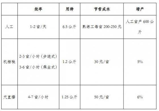 機(jī)械化育插秧可細(xì)分為耕整地、床土準(zhǔn)備、秧田準(zhǔn)備、機(jī)械播種、育秧及高速栽植等6大環(huán)節(jié),用工量大、設(shè)備投入高,作業(yè)成本在150元/畝左右;而機(jī)械化穴直播僅需耕整地、催芽及播種3個(gè)作業(yè)環(huán)節(jié),作業(yè)環(huán)節(jié)的精簡(jiǎn)直接降低了設(shè)備成本及用工成本,相對(duì)于機(jī)械化育插秧技術(shù),機(jī)械化穴直播技術(shù)作業(yè)成本優(yōu)勢(shì)顯而易見(jiàn)。