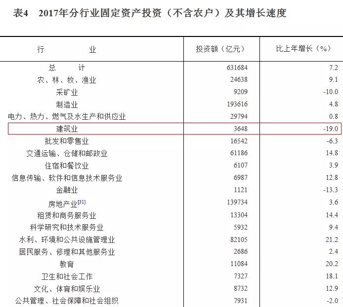 國家統(tǒng)計局公布建筑業(yè)最新發(fā)展數(shù)據(jù) 投資連續(xù)3年走低!市場真的不景氣嗎? —— 文章正文2018-03-06