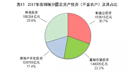 2017年全社會固定資產(chǎn)投資641238億元,比上年增長7.0%。其中固定資產(chǎn)投資(不含農(nóng)戶)631684億元,增長7.2%。分區(qū)域看,東部地區(qū)投資265837億元,比上年增長8.3%;中部地區(qū)投資163400億元,增長6.9%;西部地區(qū)投資166571億元,增長8.5%;東北地區(qū)投資30655億元,增長2.8%。