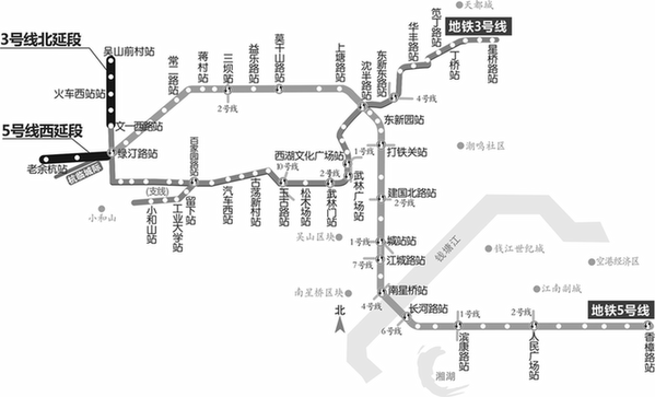 杭州地鐵三期新增機場軌道快線、3號線北延、5號線西延
