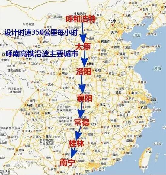最新進展:呼南高鐵(呼和浩特—南寧)是我國“八縱八橫”高鐵網(wǎng)中重要的一縱。該鐵路正進行前期工作,已進行了設(shè)計招標,計劃2018年動工。