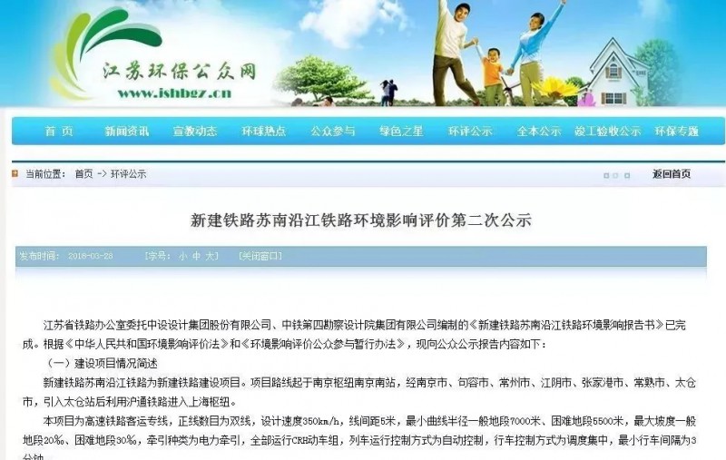 新建蘇南沿江鐵路環(huán)境影響評價(jià)第二次公示